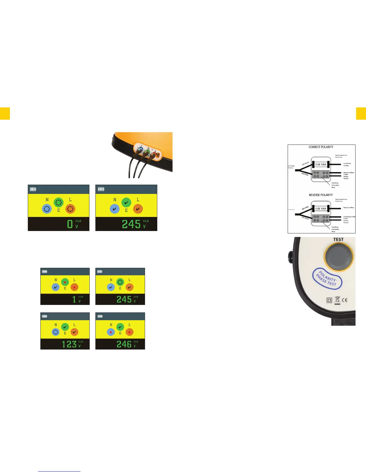 displayed. Correct wiring is indicated by a