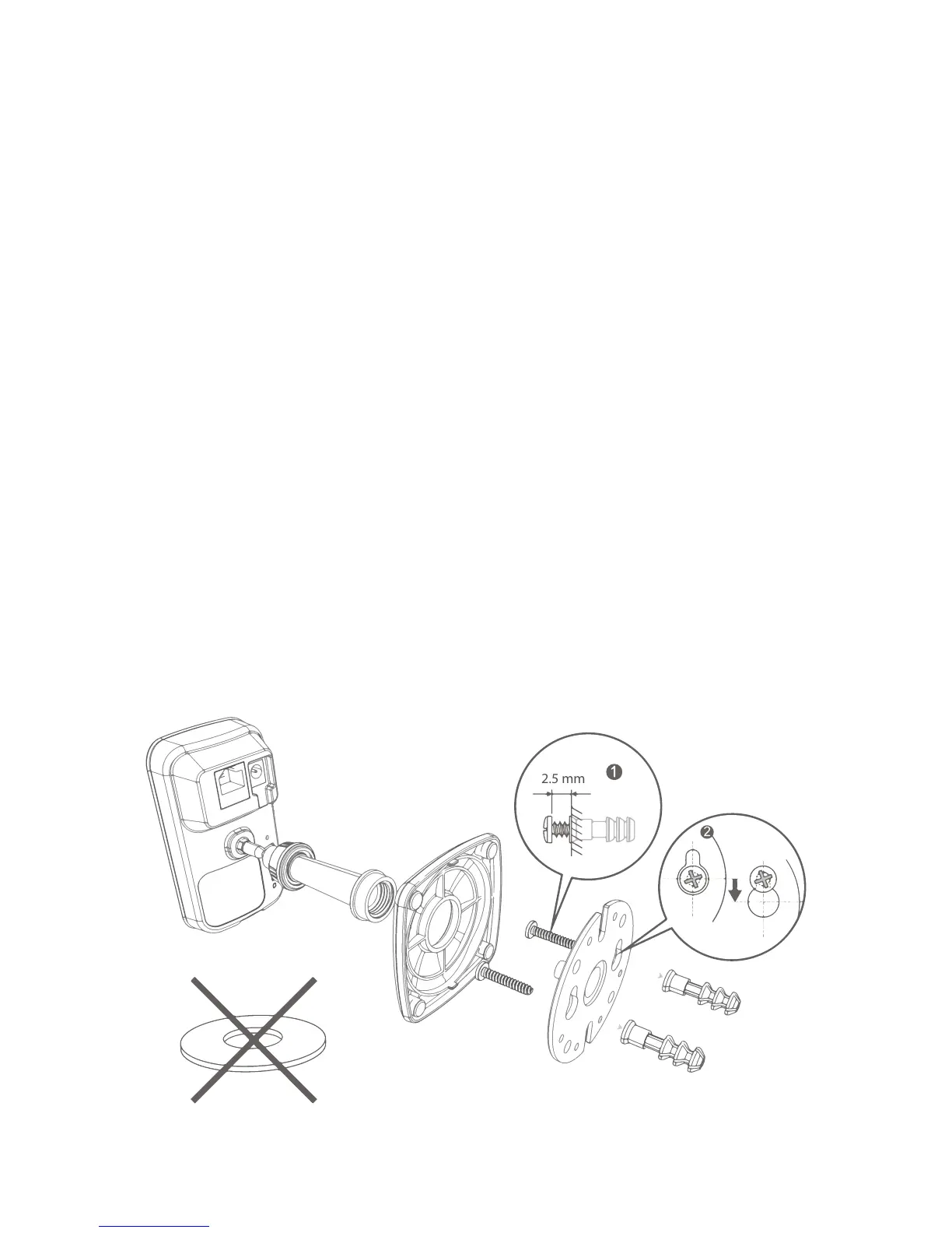 Fasten the mounting bracket to the wall with the screws and anchors included in
