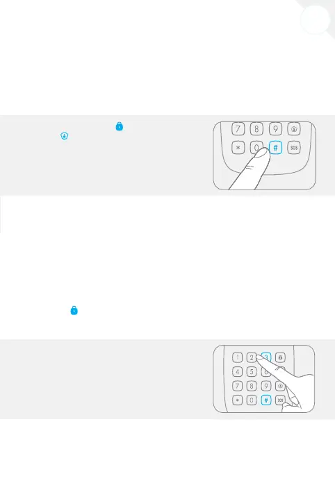 1. Druk op de inschakelknop [ ] of op de thuisknop [ ] op de keypad om deze te