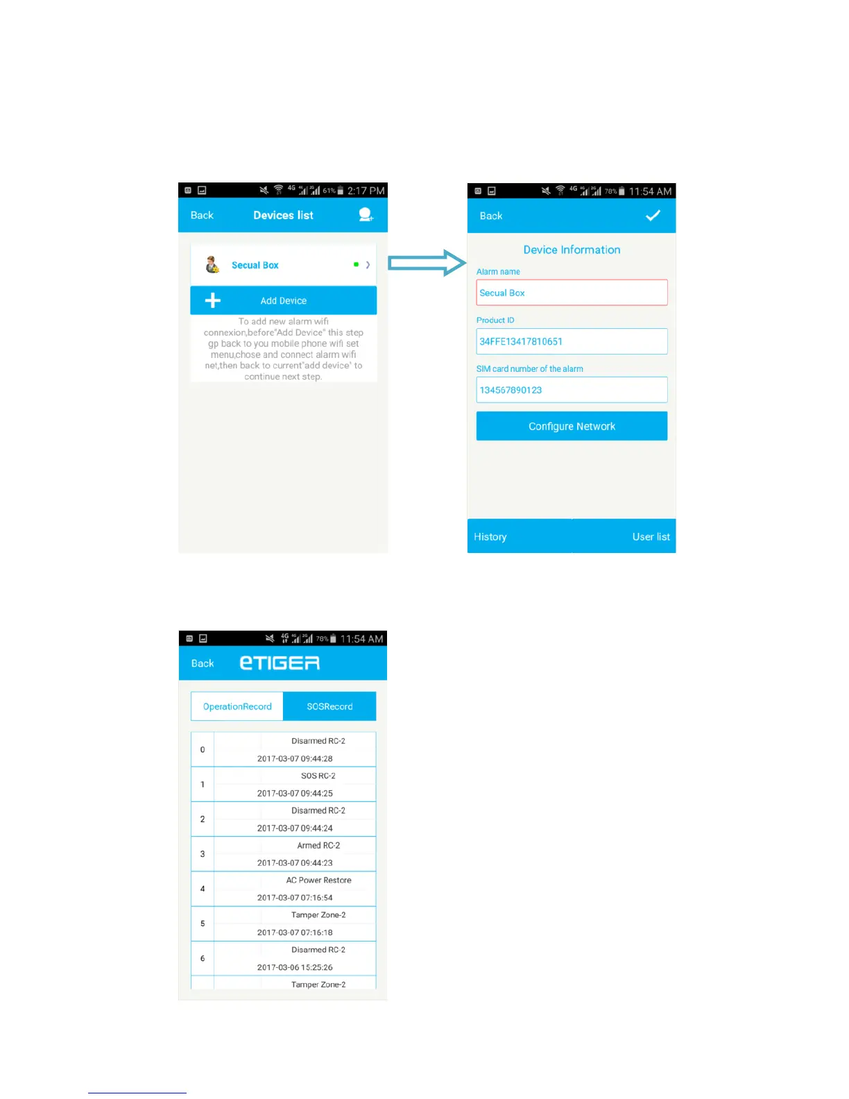page you can modify the “Alarm name and SIM card number” , check the