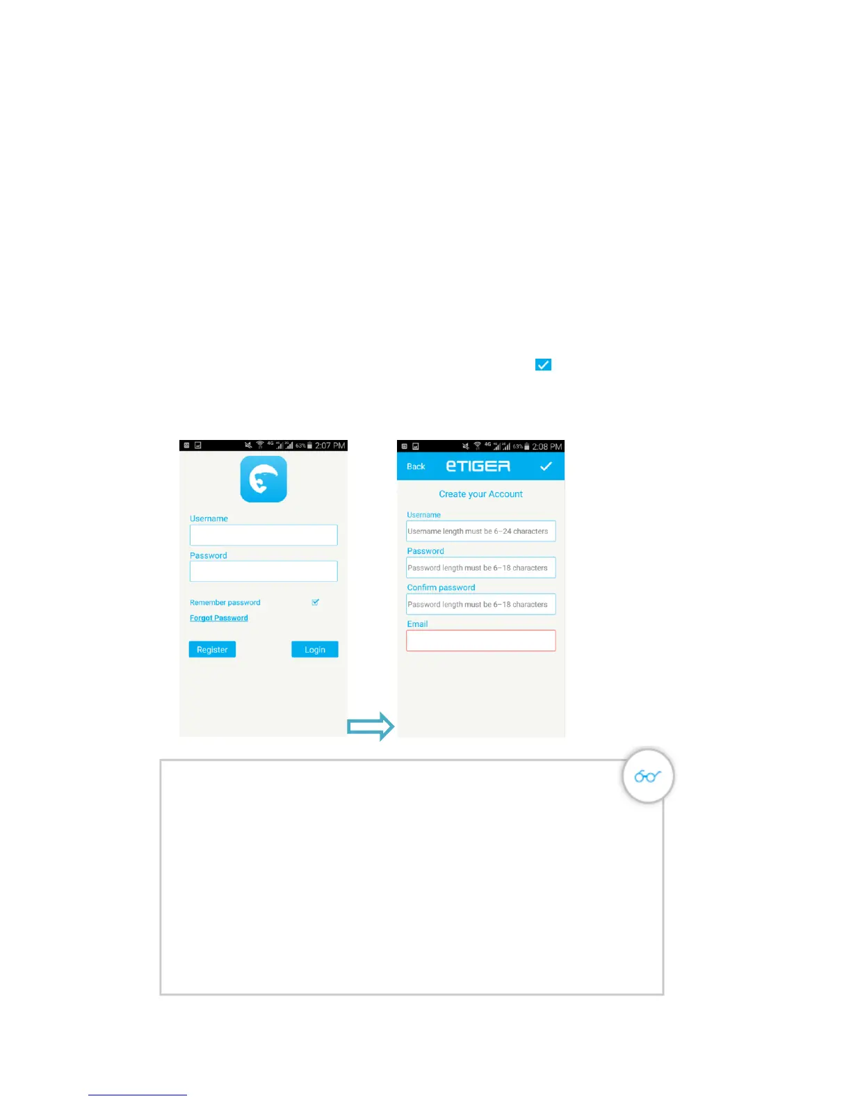 5. Fill the Username, Password and Email in the fields, click “ ” to save the