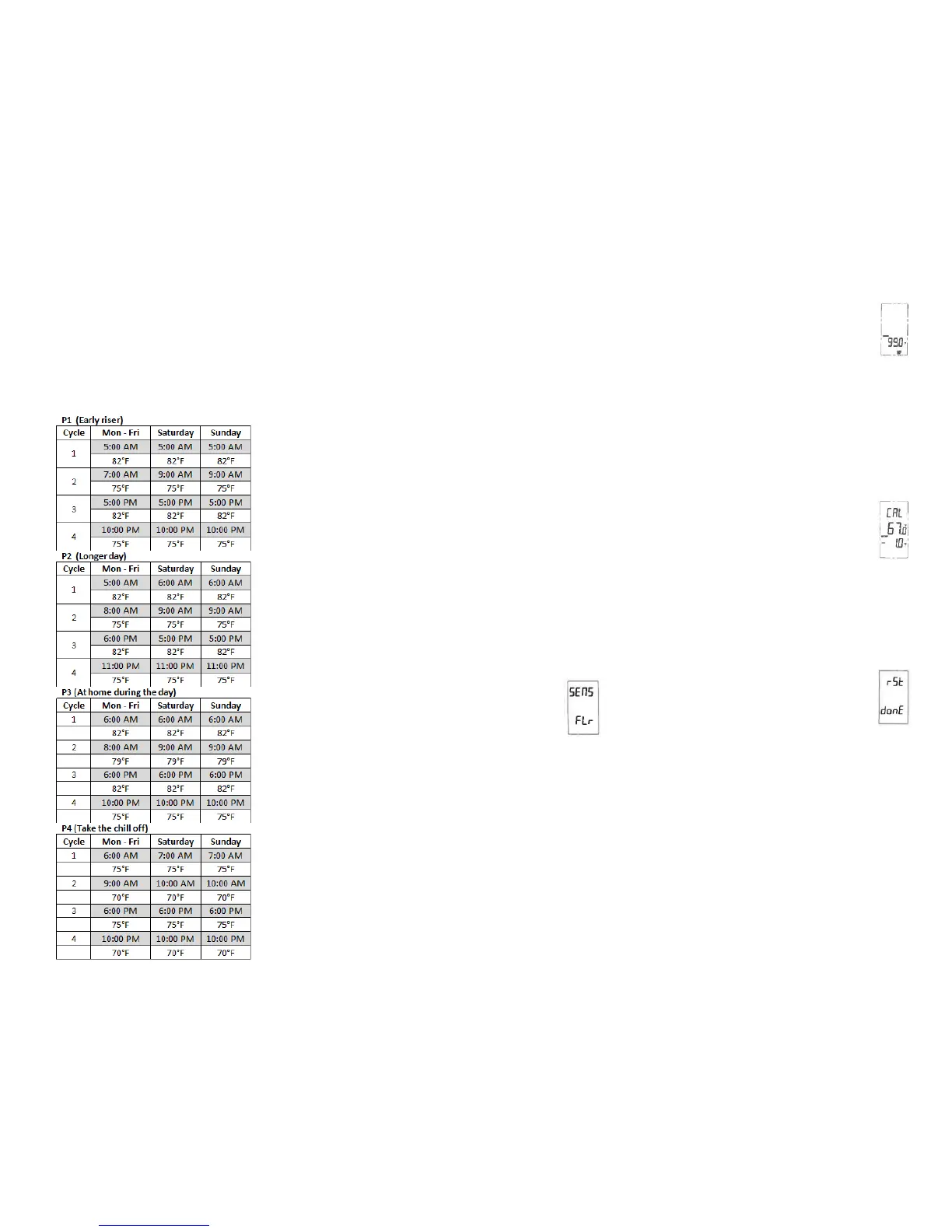 options: Flr for floor temperature mode