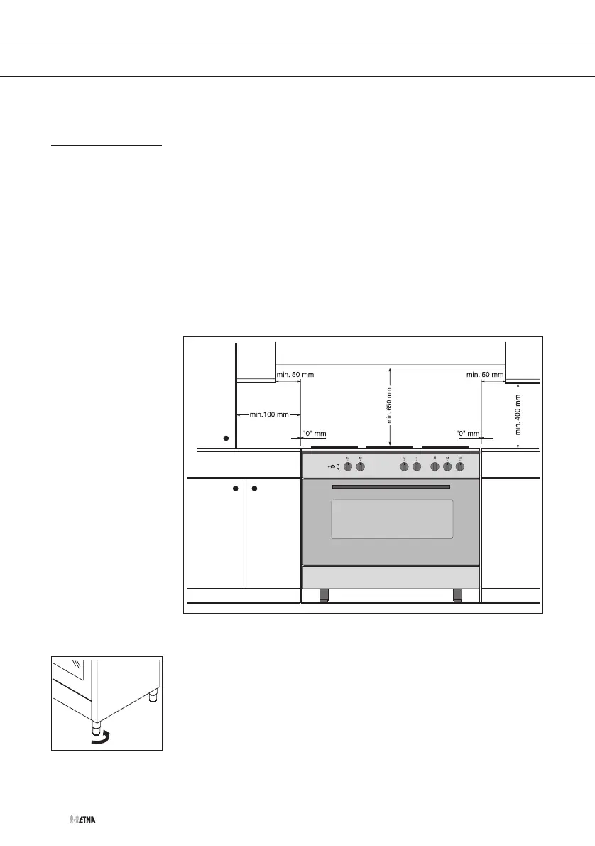 • If the cooker is built in between kitchen cabinets, the lining of the