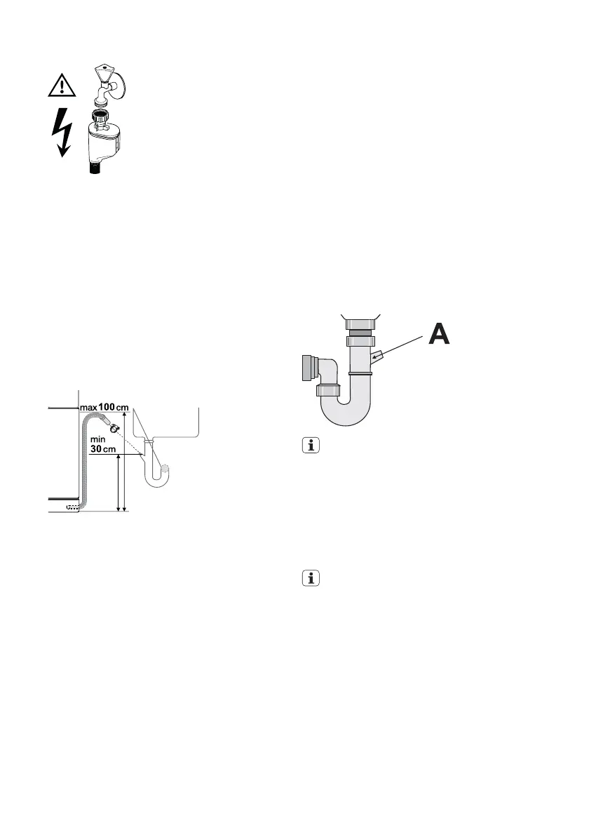 De afvoerslang kan vanaf de afwasmachine