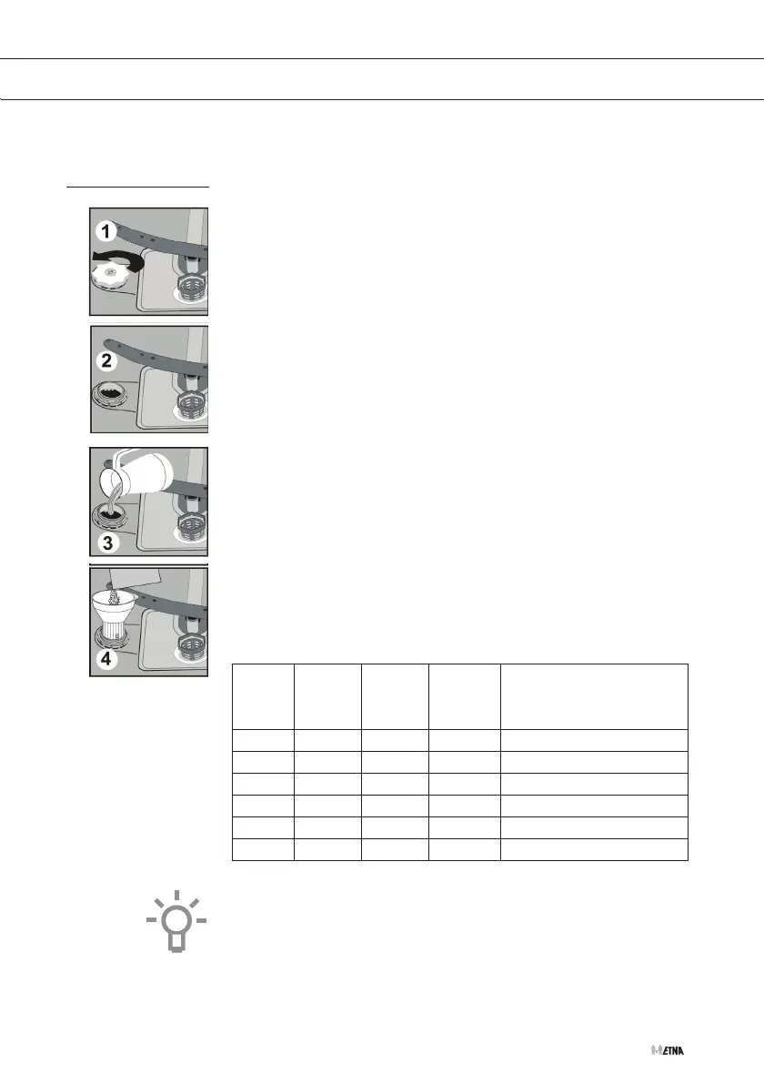 Note! Always fill the salt reservoir and adjust the water hardness