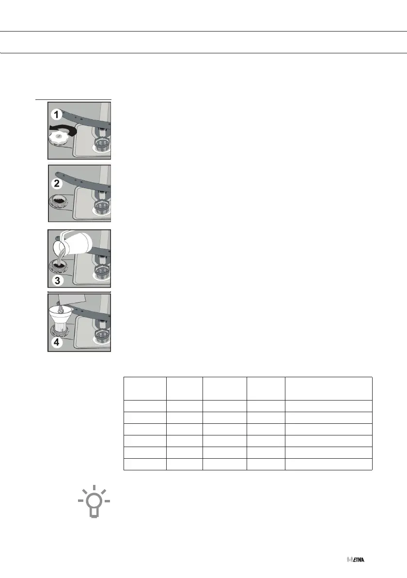 • Setzen Sie den Trichter in die Öffnung des Behälters ein. Füllen Sie