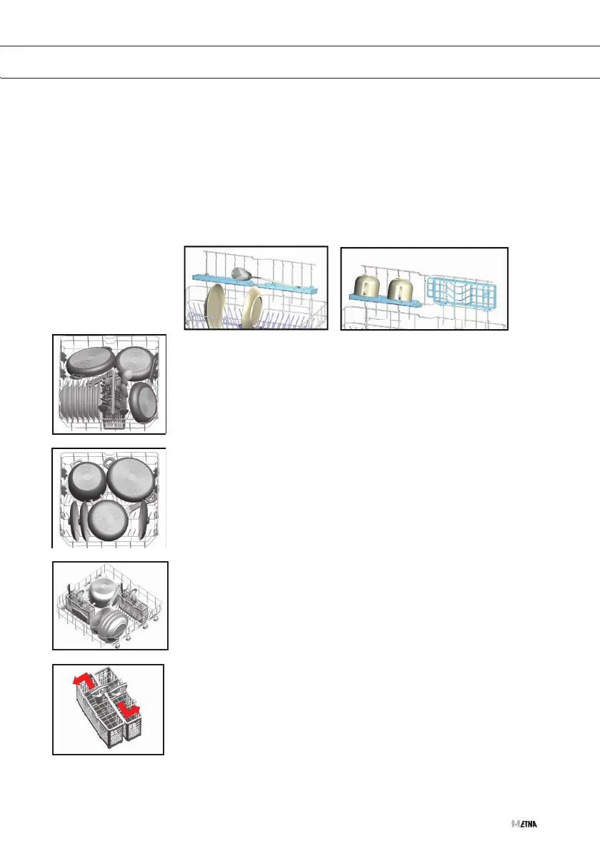 sind, in den unteren Korb zu geben: Töpfe, Pfannen, Pfannendeckel,