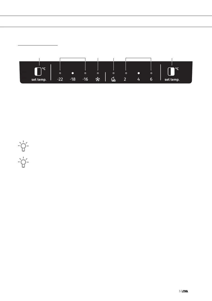 1. Insteltoets voor de temperatuur (vriescompartiment) en intensieve vriesfunctie