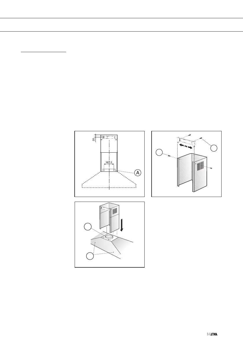 1. Screw the cooker hood to the wall with the plugs and screws (A).