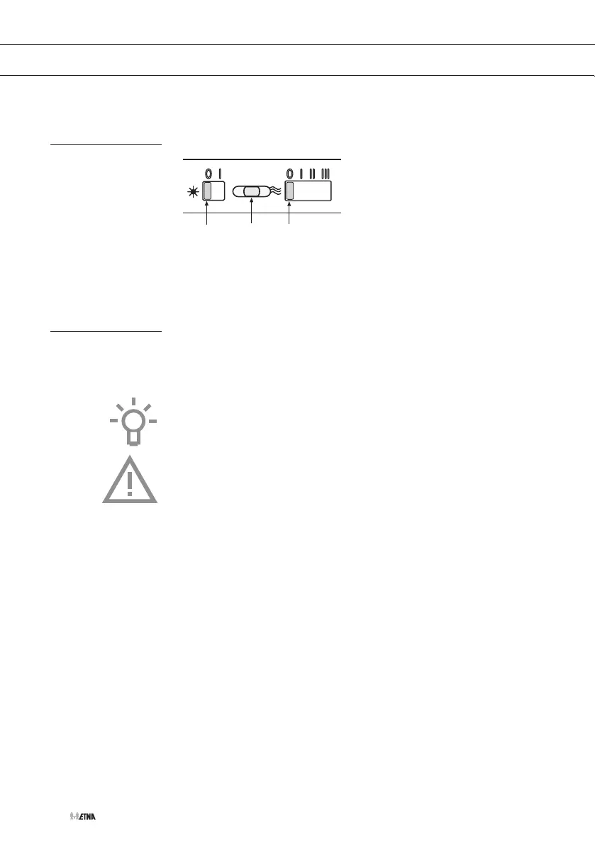 B In/uitschakelen + ventilatorstanden 1, 2, of 3