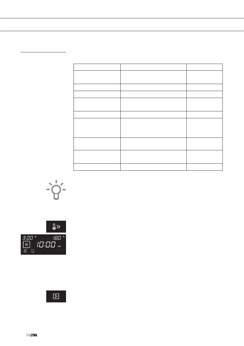 • Le préchauffage ne fonctionne que lorsqu’une des fonctions