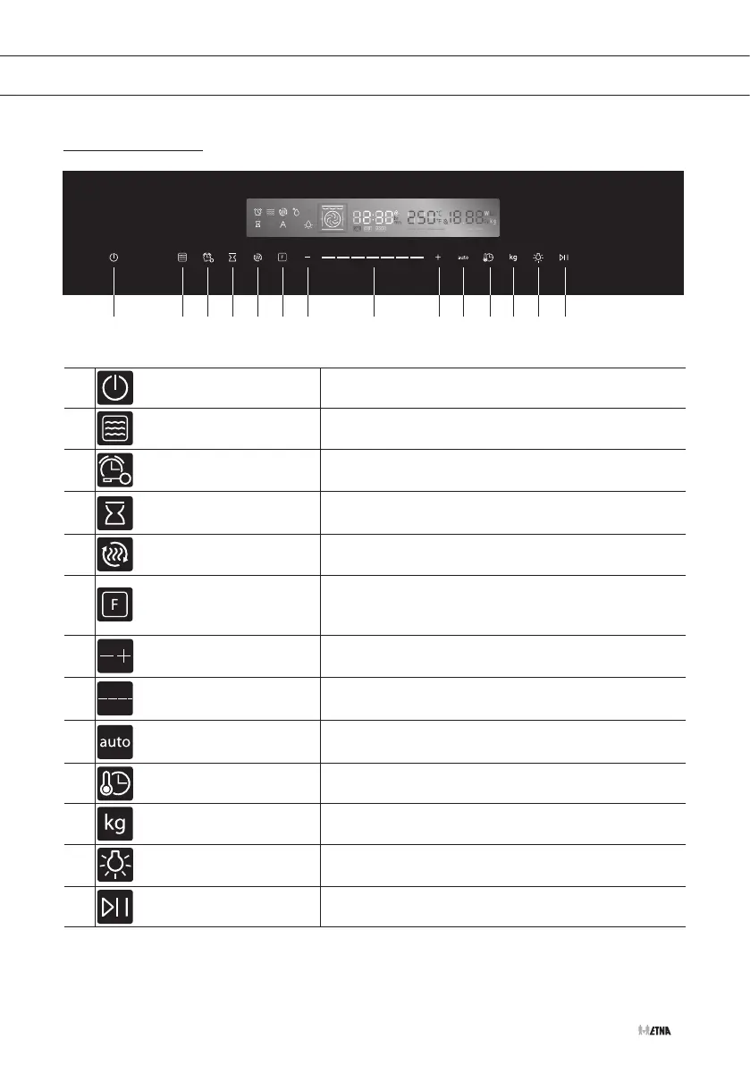 1. AAN/UIT-toets Hiermee schakelt u de oven in en uit.