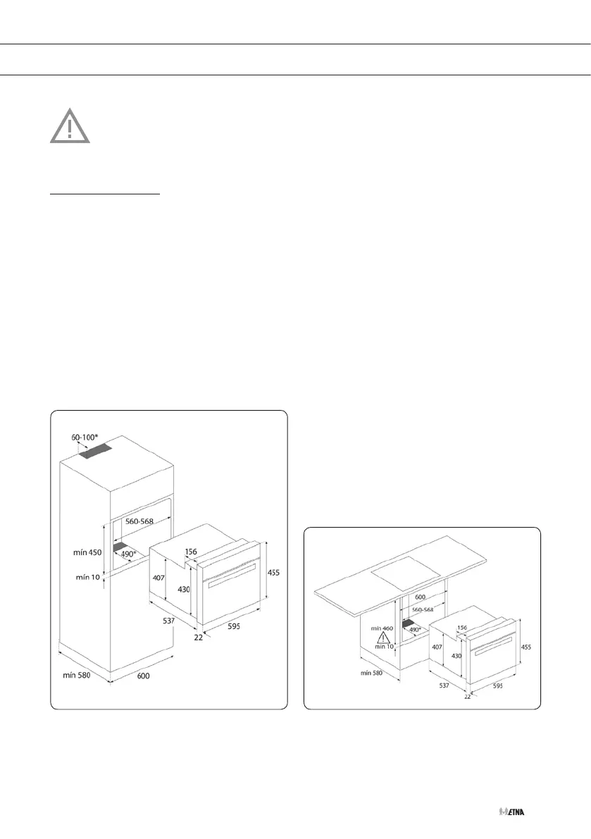 • The installation instructions must be adhered to strictly. If not, the oven’s ventilation circuit