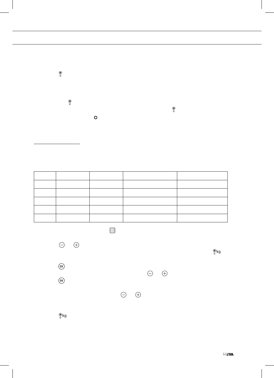 The following table shows the defrosting by weight function programs, indicating weight intervals