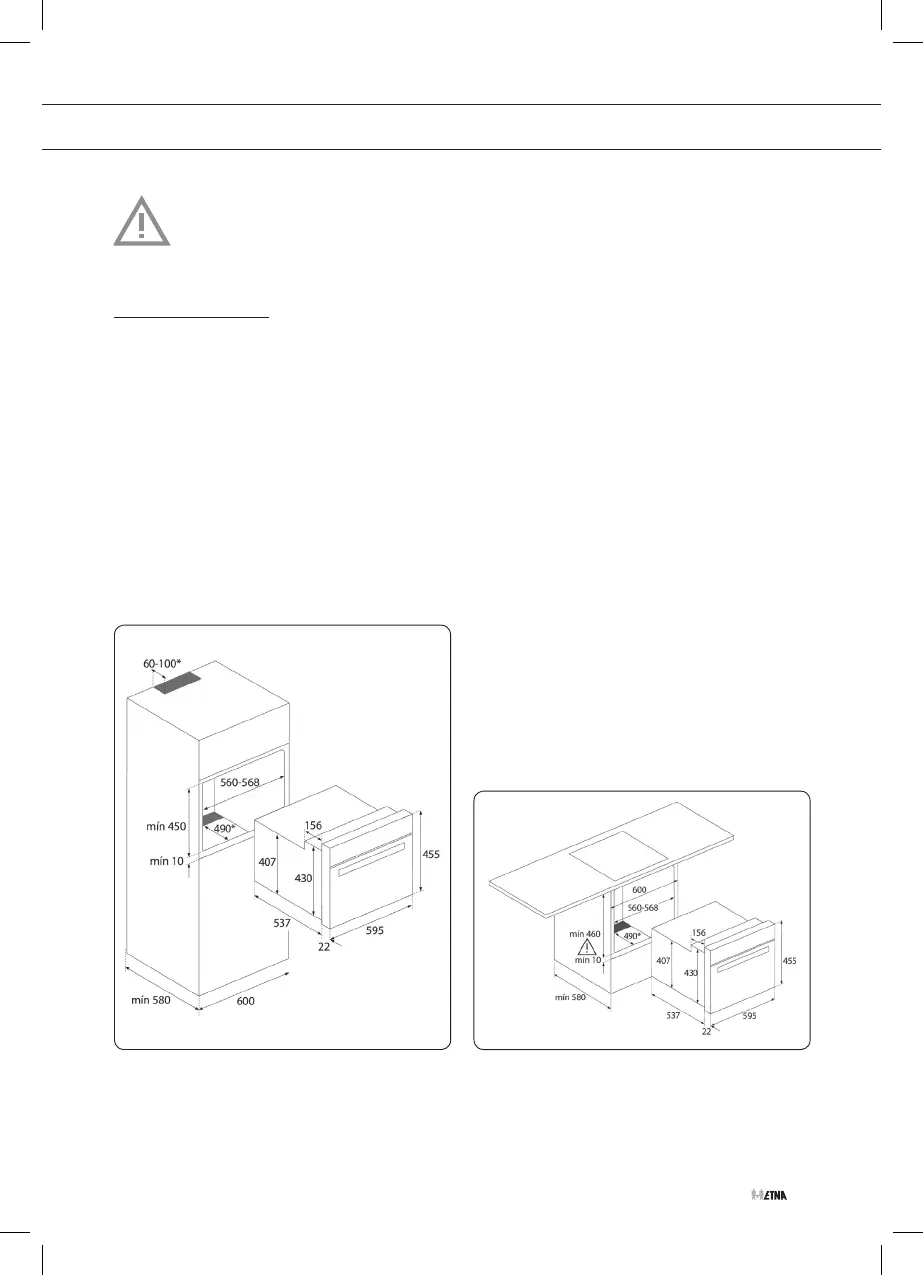• The unit in which the oven is installed and adjacent units must withstand temperatures