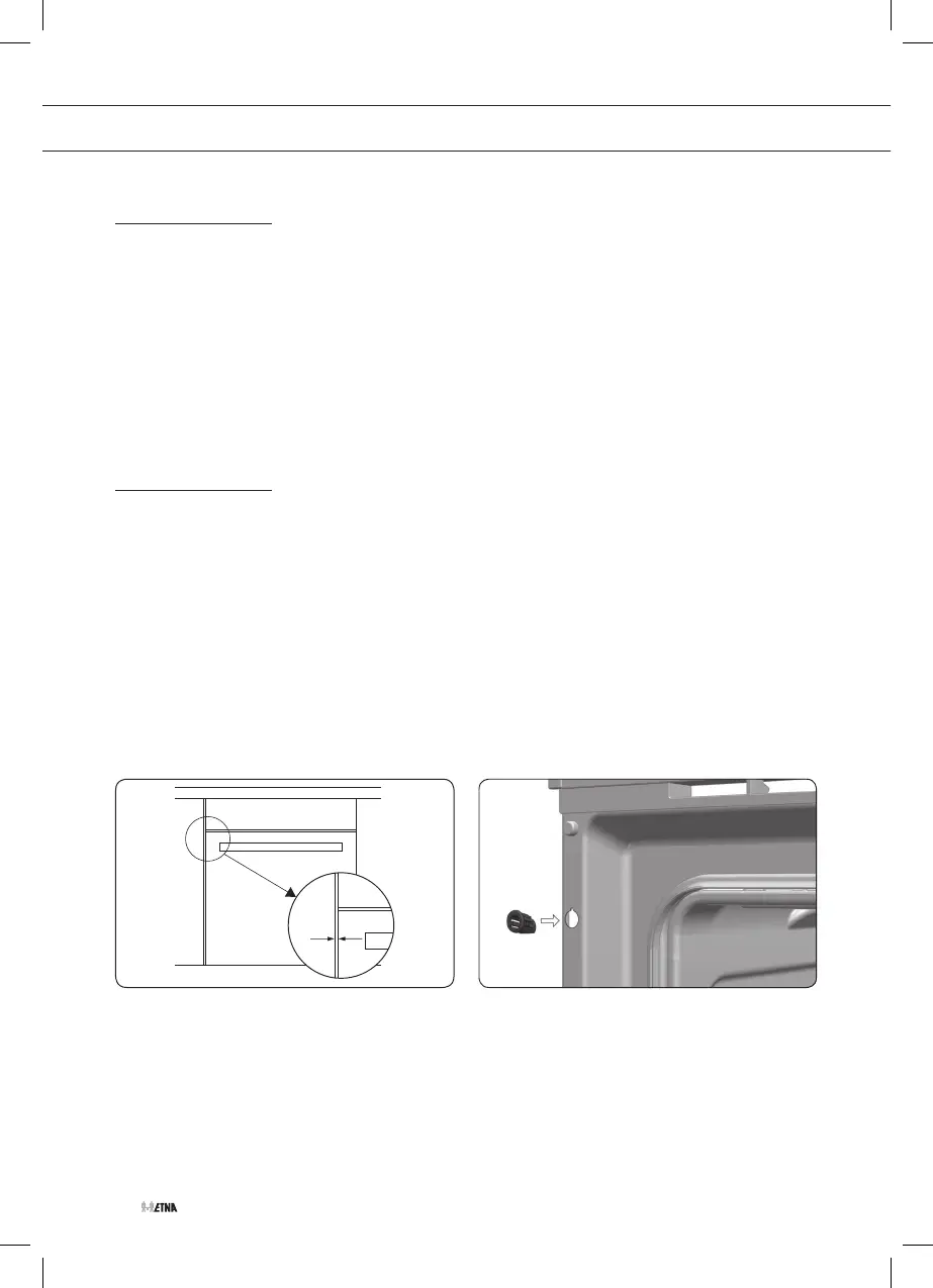3. Centre the oven in the unit so that there is a minimum space of 5 mm between the oven