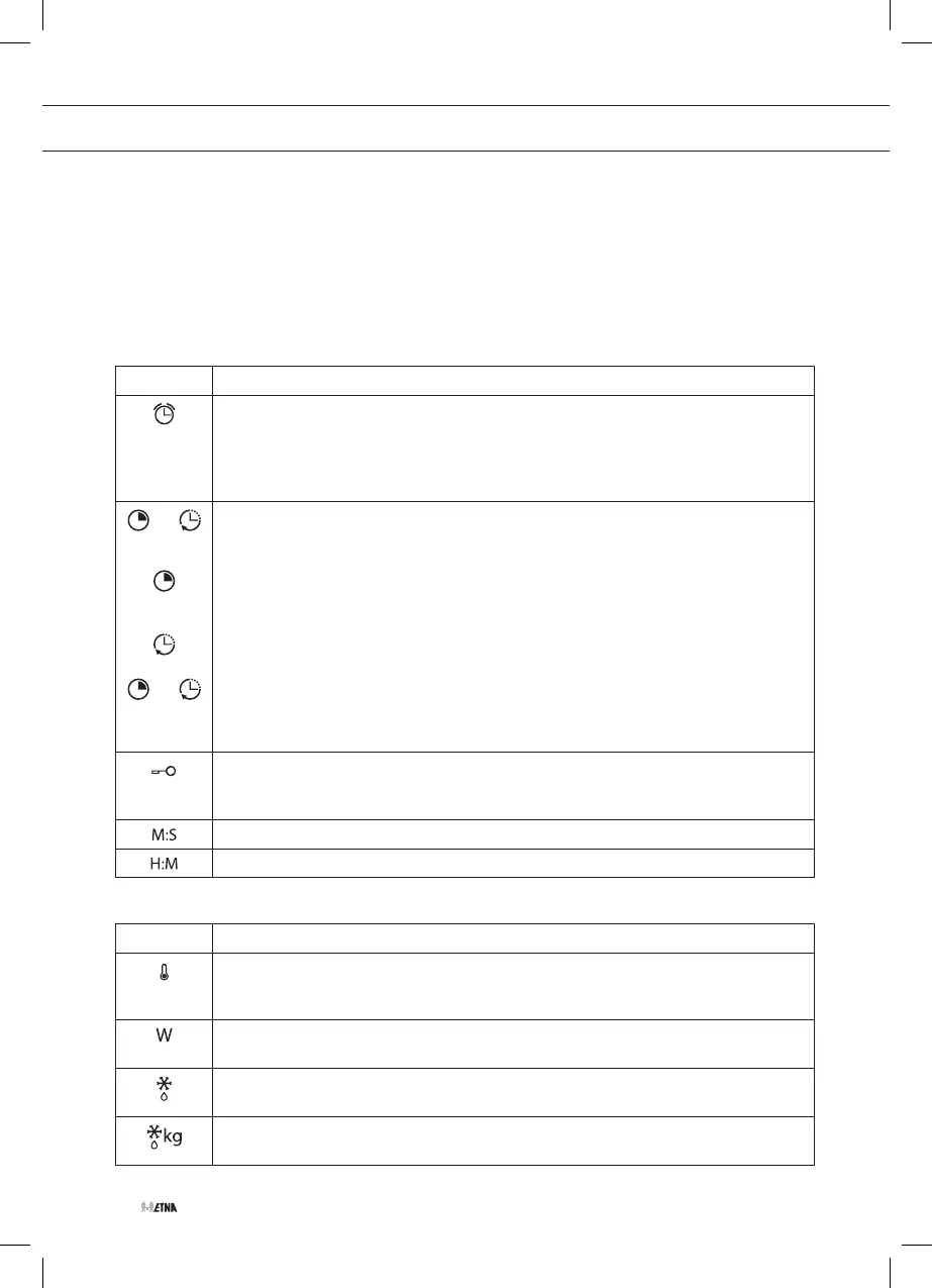 • Licht op als de kookwekkerfunctie van de klok wordt geselecteerd.