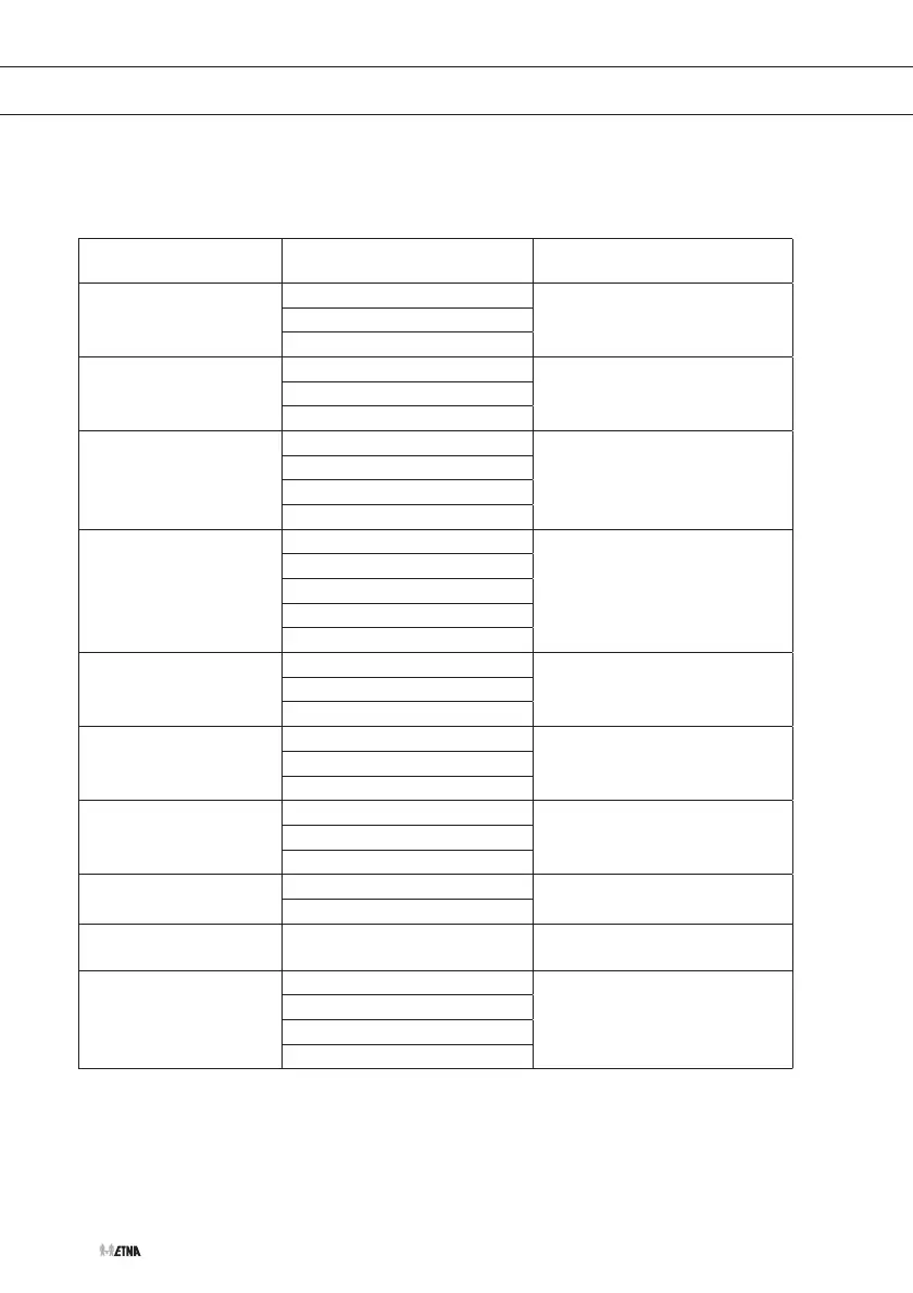 De onderstaande tabel bevat de automatische programma’s en de bijbehorende instellingen per