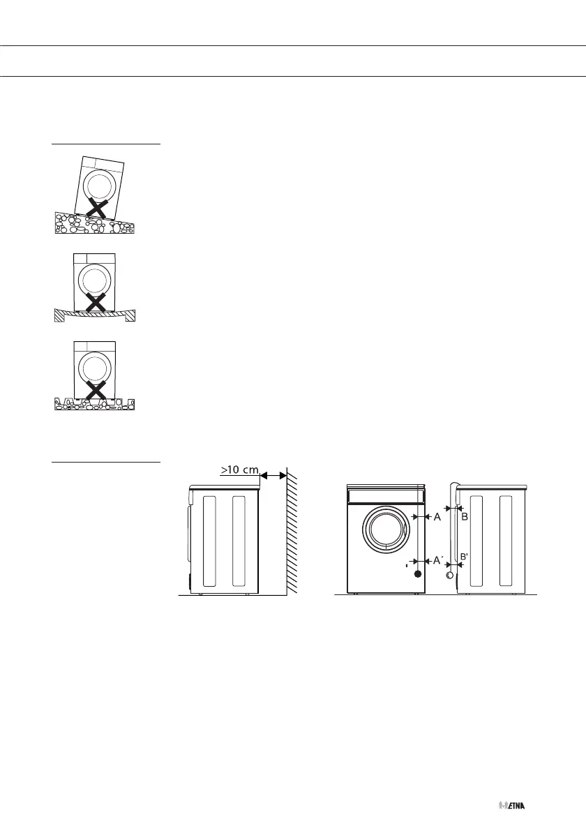 • Plaats de wasdroger waterpas op een solide, vlakke ondergrond.