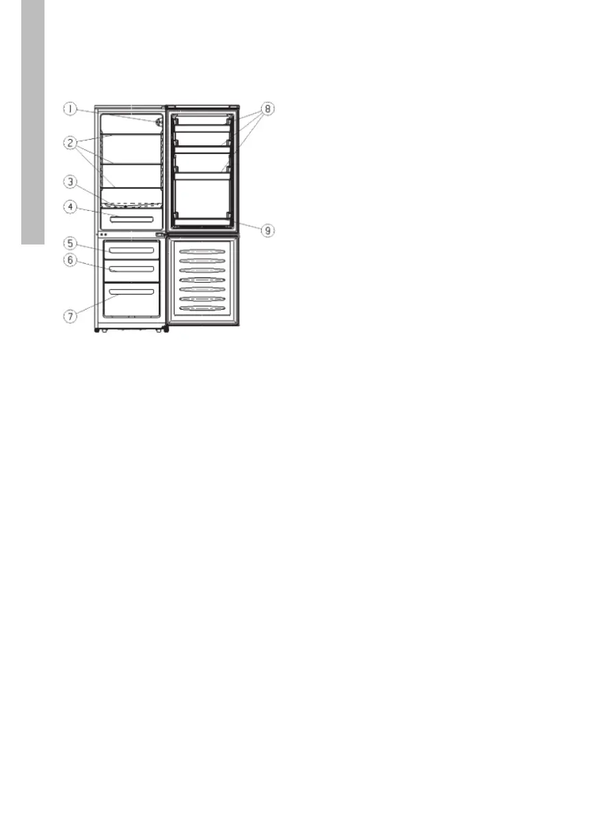 ETNA EKV1801WIT - Appliance description; Thermostat and interior lighting; Freezer compartment shelf; Vegetable drawer