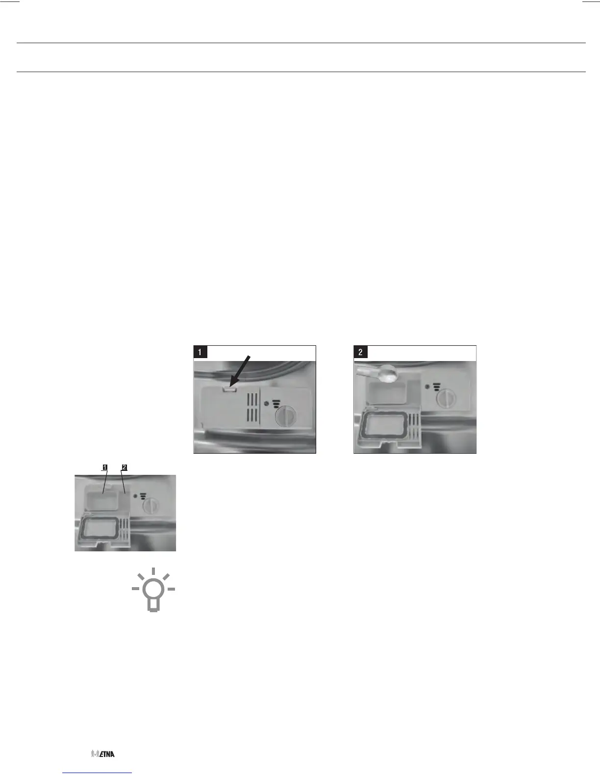 • Compartment for main wash cycle detergent (1), “MIN” is