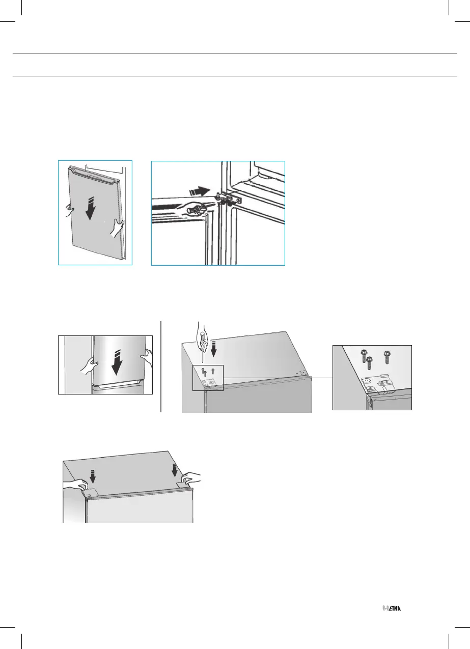 14. Slide the top door back on to the middle hinge, making sure that the middle hinge pin fits