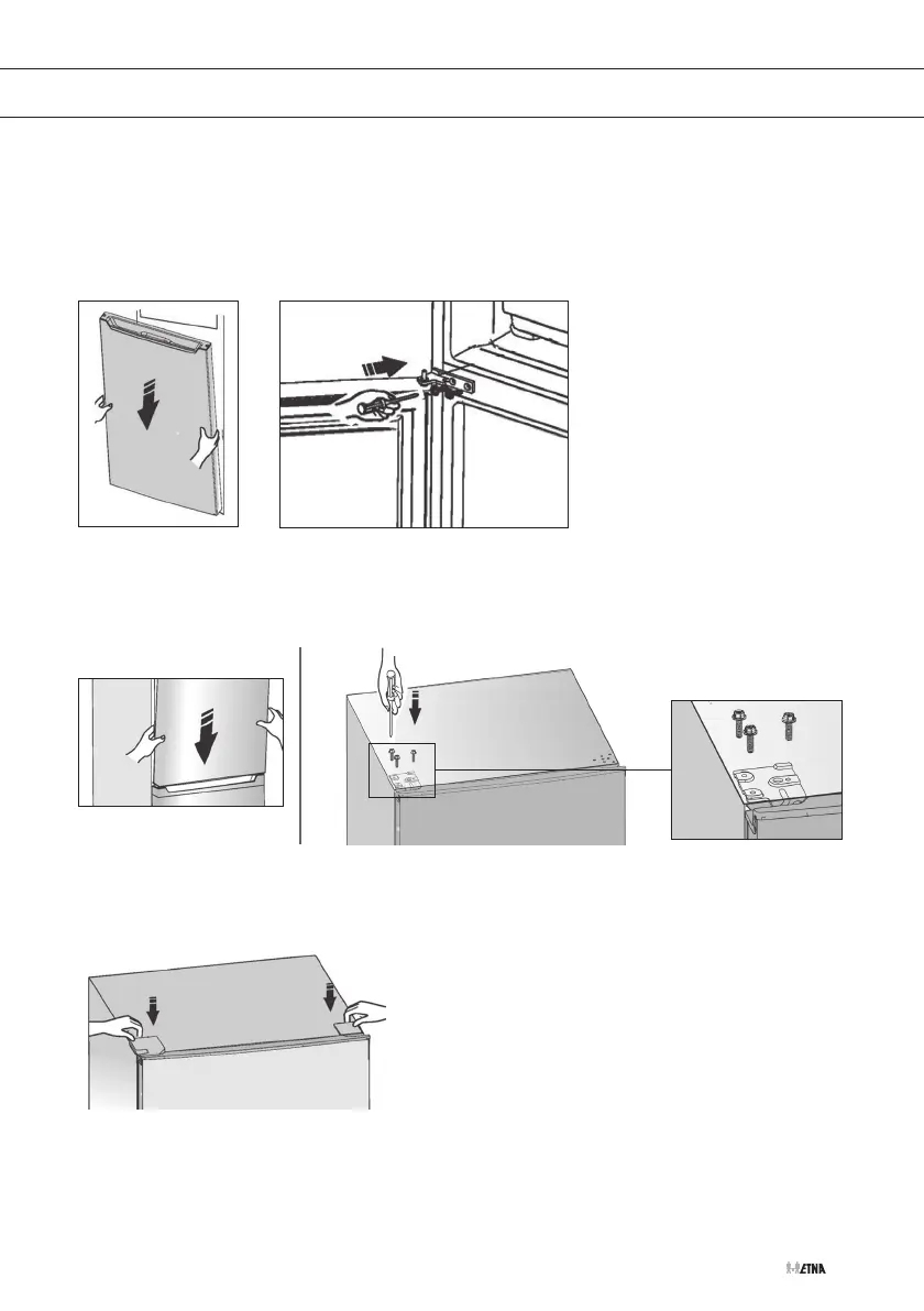 15. Montieren Sie das obere Scharnier mit den Schrauben an der gegenüberliegenden Seite.