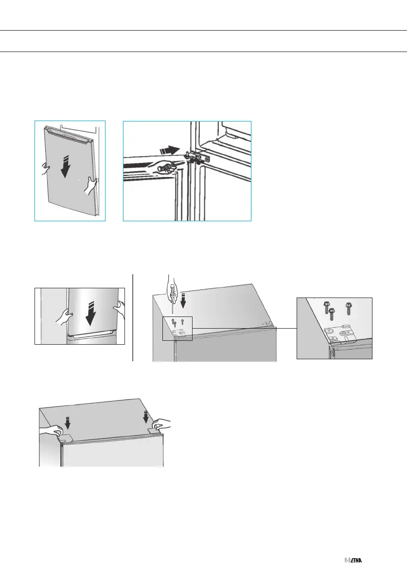 15. Bevestig het bovenste scharnier aan de andere kant met de schroeven.