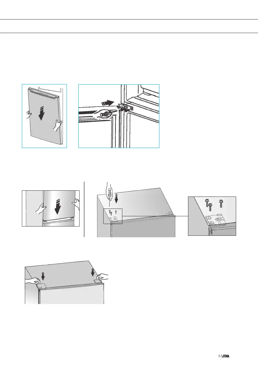 14. Slide the top door back on to the middle hinge, making sure that the middle hinge pin fits