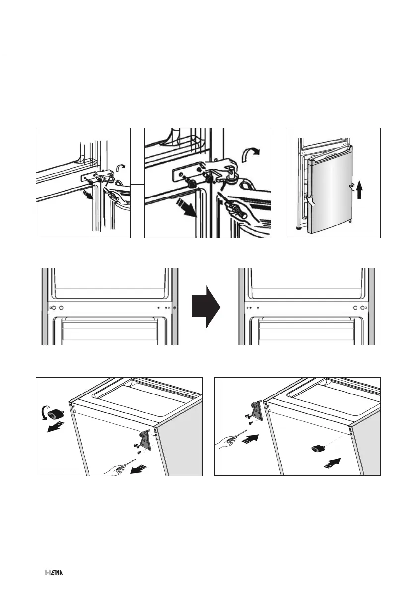 7. Soulevez délicatement la porte inférieure de la charnière inférieure et placez-la sur une