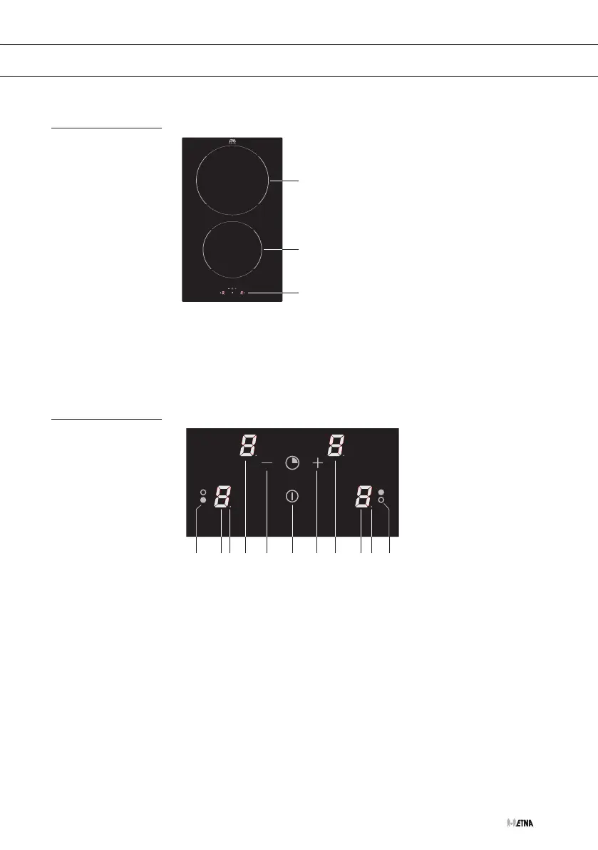 1. Kookzone achter Ø 200 mm (2,3 kW/3,0 kW boost)