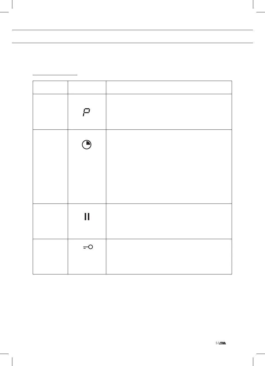 précédent. La table de cuisson s'éteint si la fonction Pause