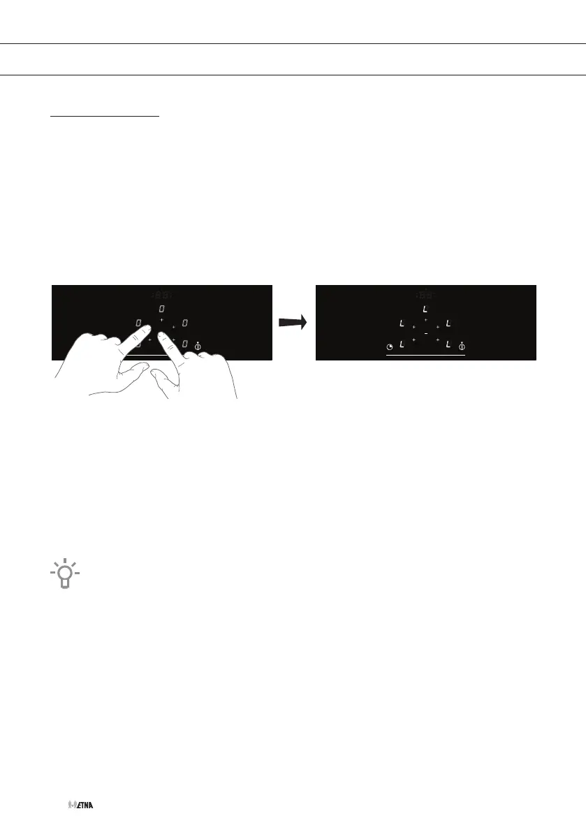 2. Raak gedurende minimaal drie seconden gelijktijdig de plustoets (+) van de kookzone links