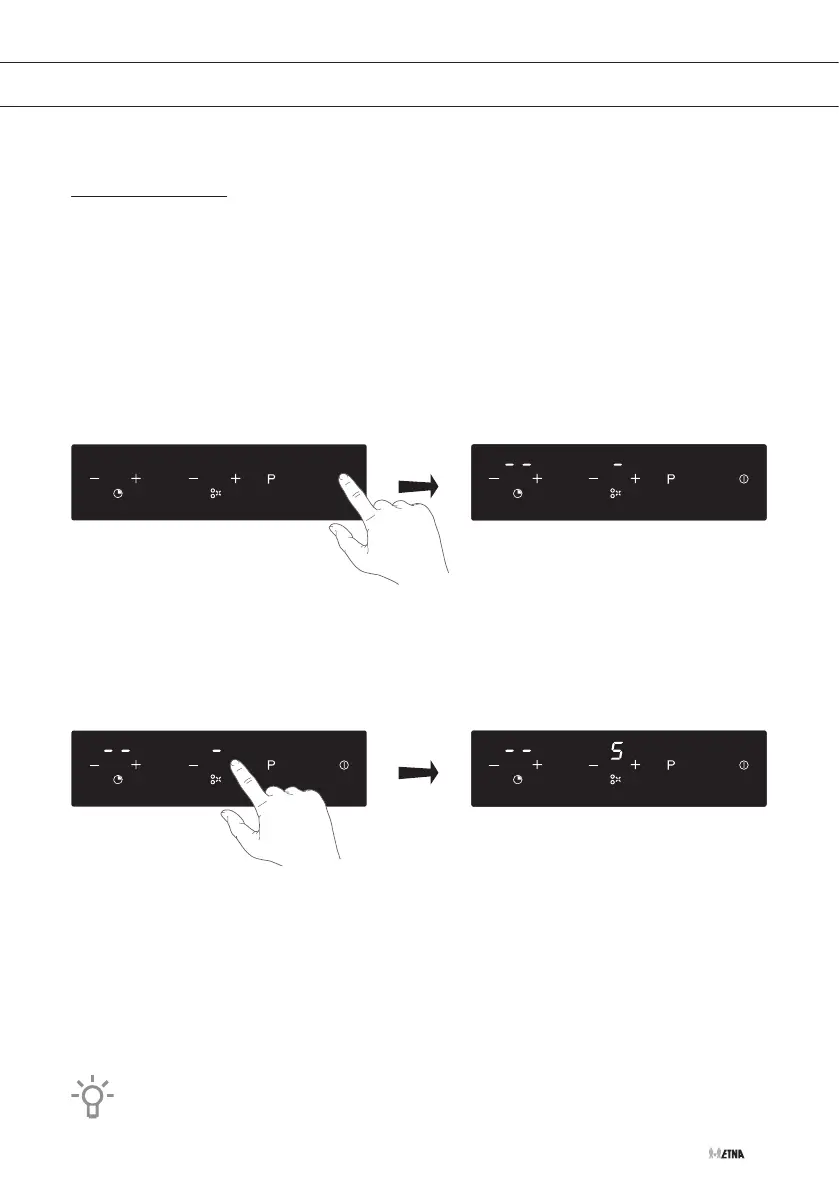 3. Raak de toets ‘-’ of ‘+’ aan om een vermogensstand te selecteren.