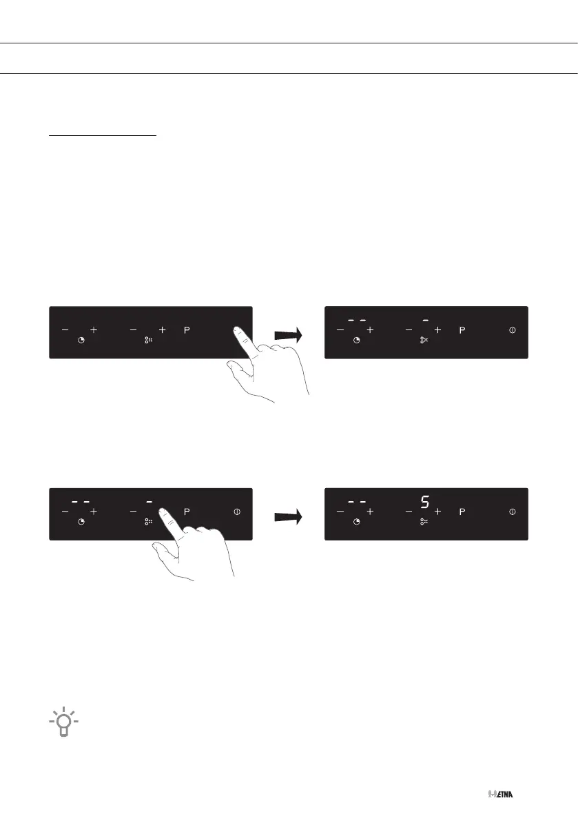 ▷ All displays show ‘-’ or ‘--’, indicating that the induction hob has entered the state of