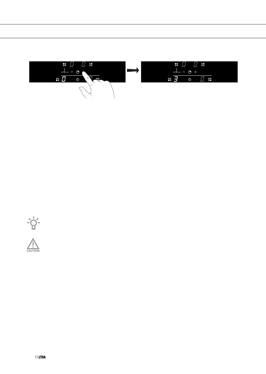 • In de display dimmen de vermogensstanden van de kookzones die niet geactiveerd zijn.