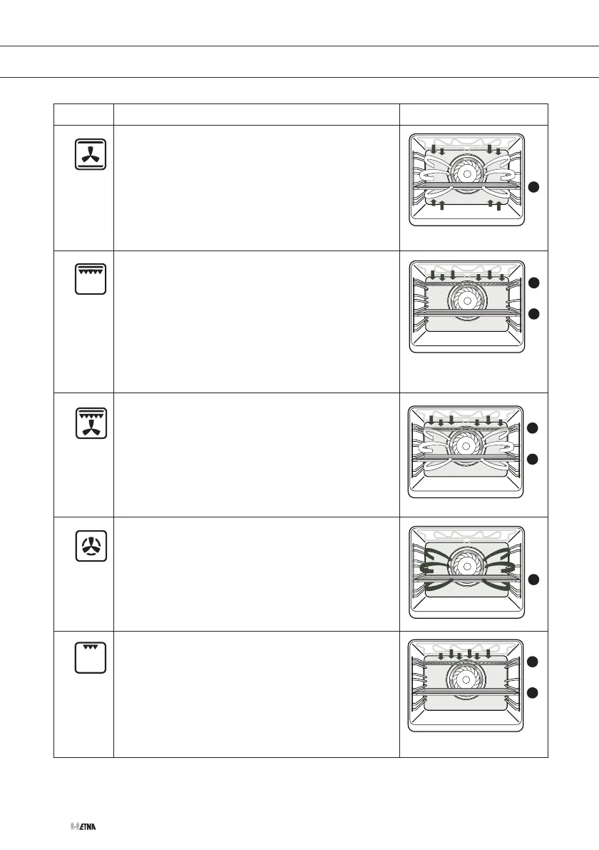 • Erwärmung durch die oberen Heizelemente. Der Lüfter
