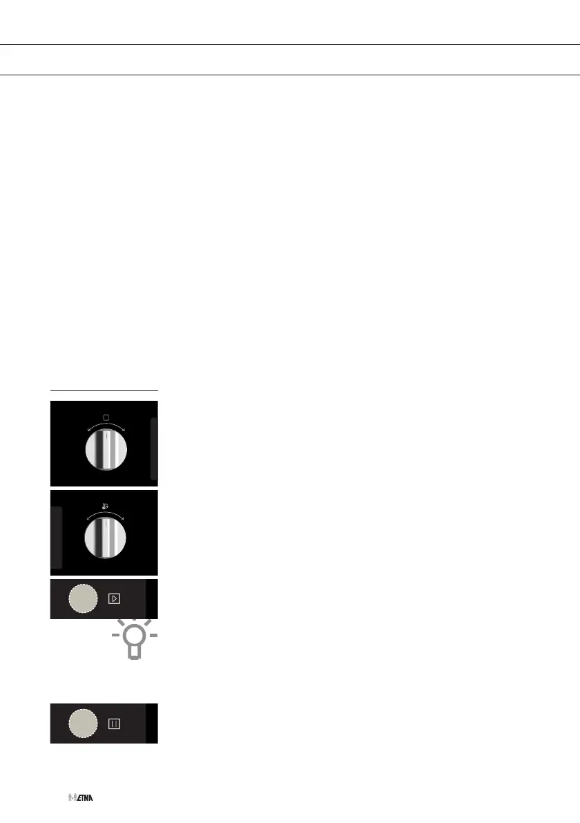 The oven switches on. The selected oven function and the