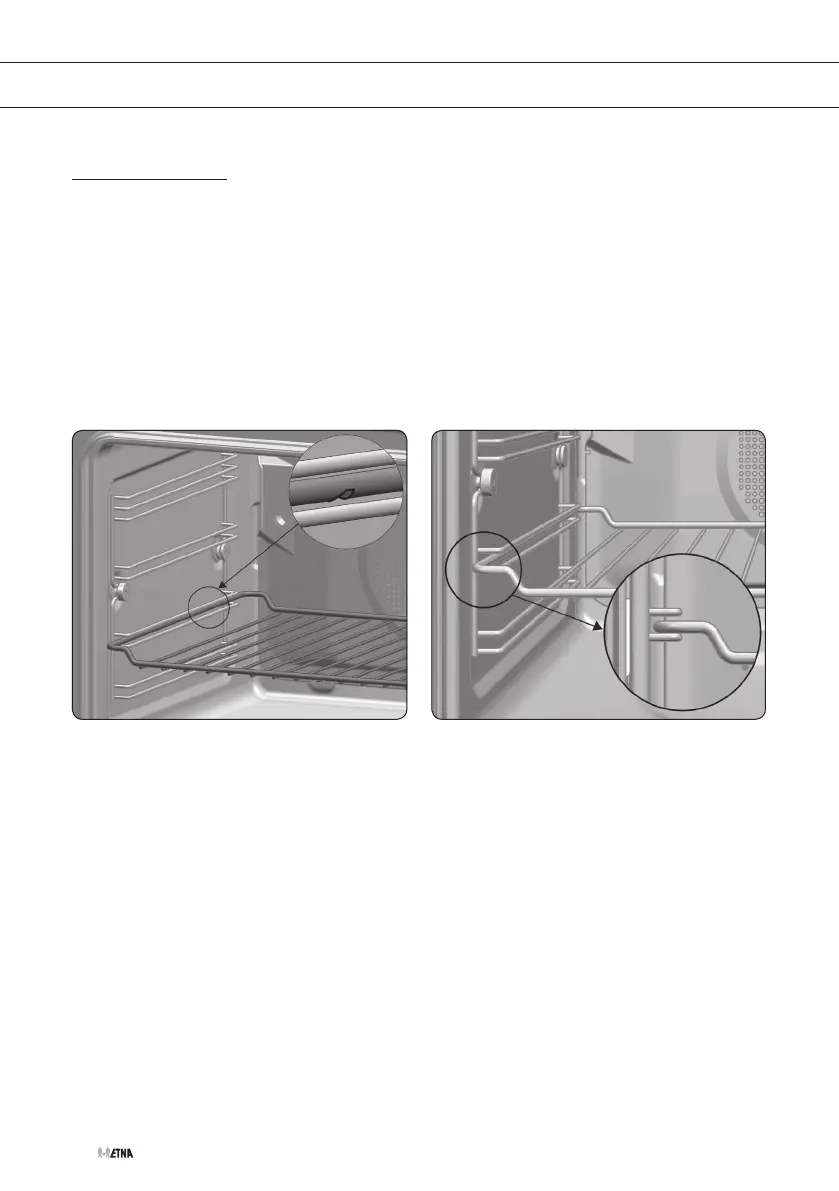 • Das Ofengestell und einige Backbleche haben Feststellkerben, um ihr versehentliches