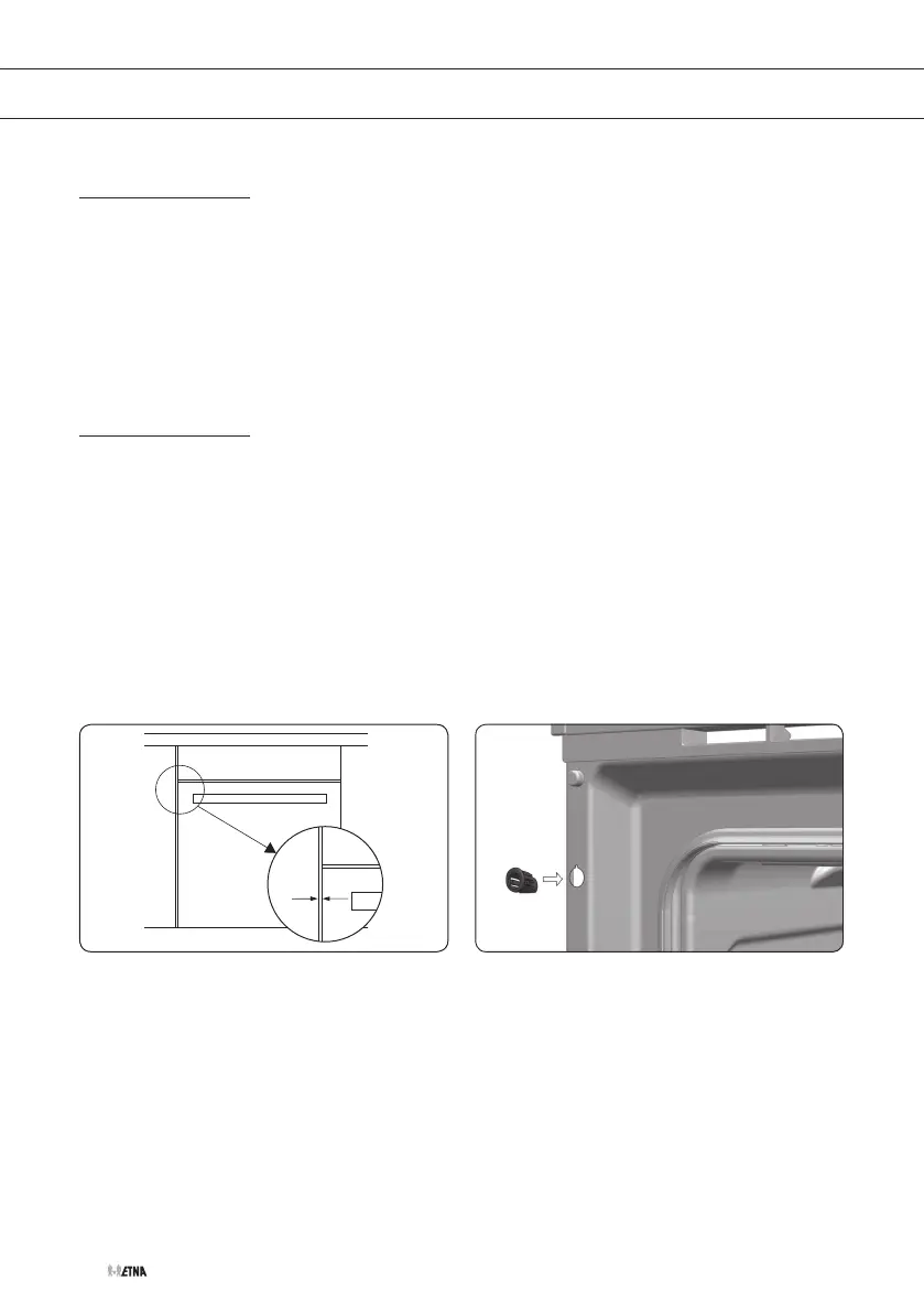2. Achten Sie darauf, dass das Backofengehäuse nicht in Kontakt mit den Schrankwänden
