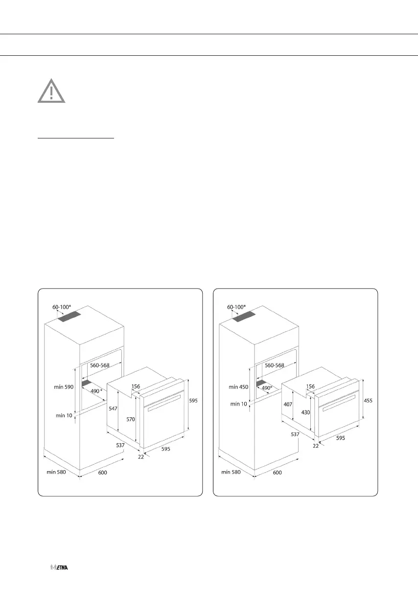• The installation instructions must be adhered to strictly. If not, the oven’s ventilation circuit