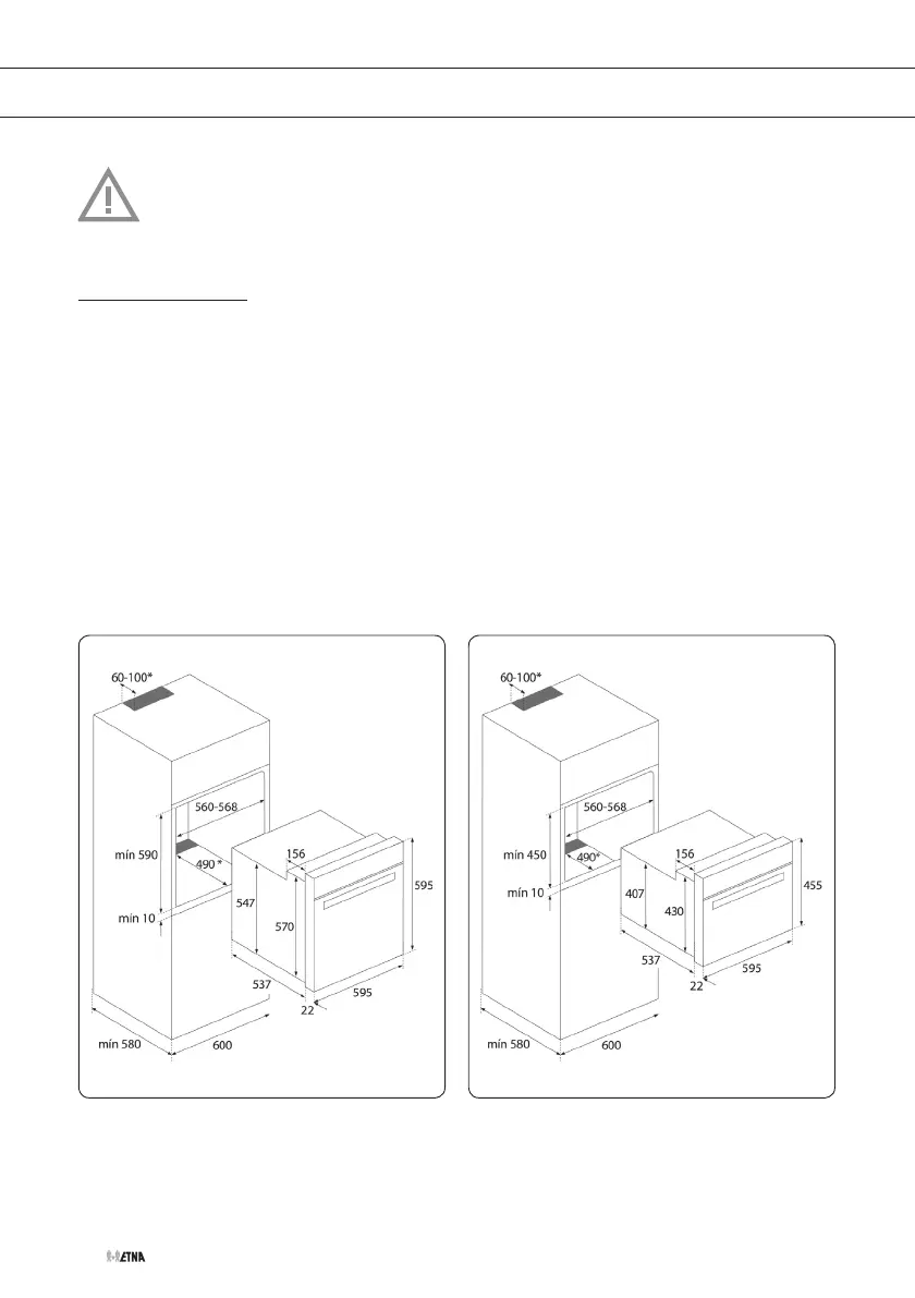 • The installation instructions must be adhered to strictly. If not, the oven’s ventilation circuit