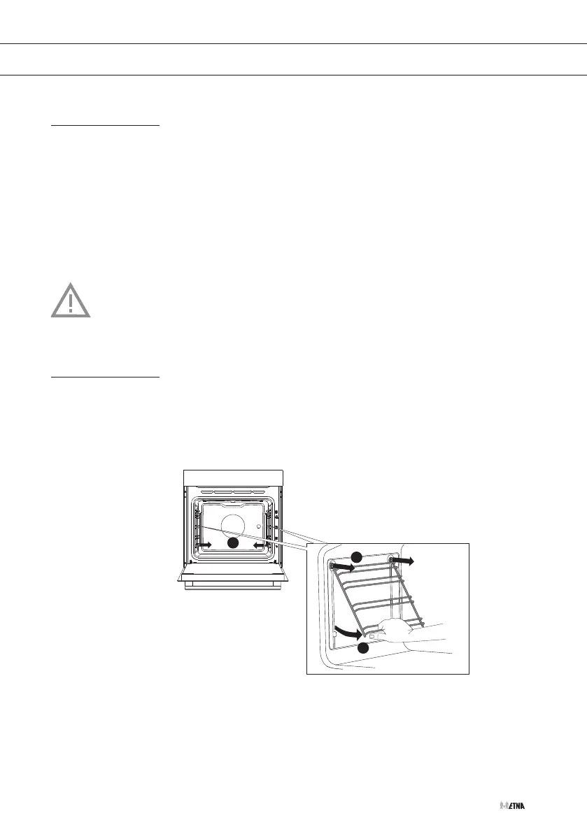 • Agrippez les gradins par le dessous et faites-les basculer vers le milieu du four (B).