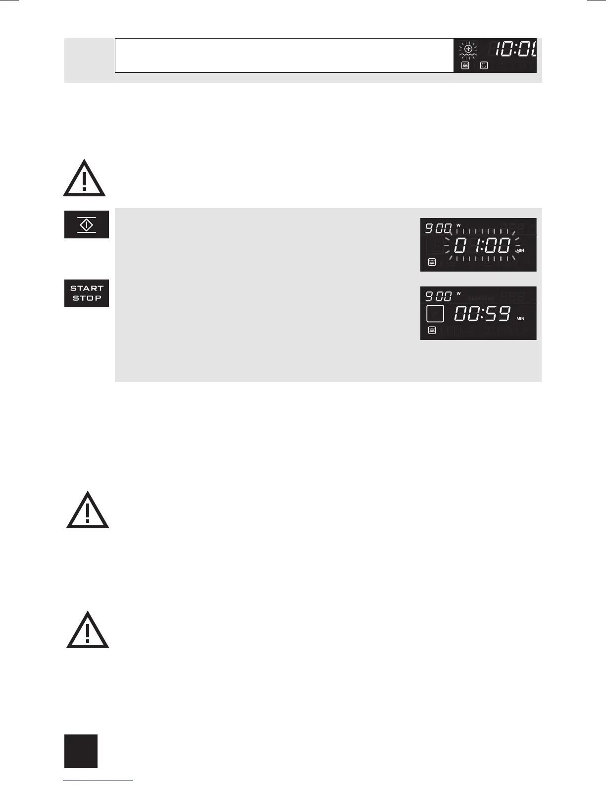 switches off and the time stops. After closing the door, press the start/pause button to