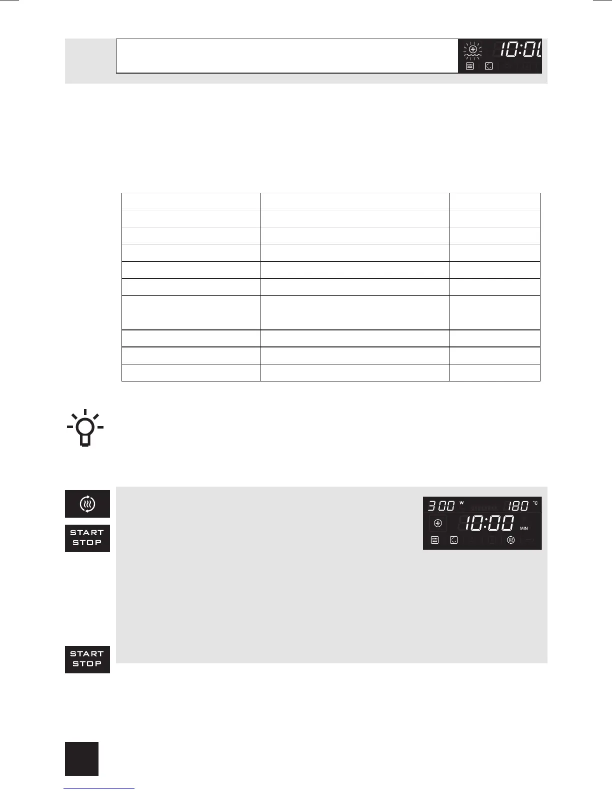• You can stop the preheating by opening the oven door or by pressing the on/off