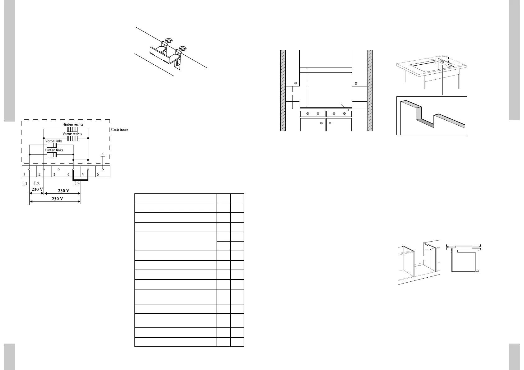 - Einbauhöhe des Kochfeldes (siehe Tabelle);