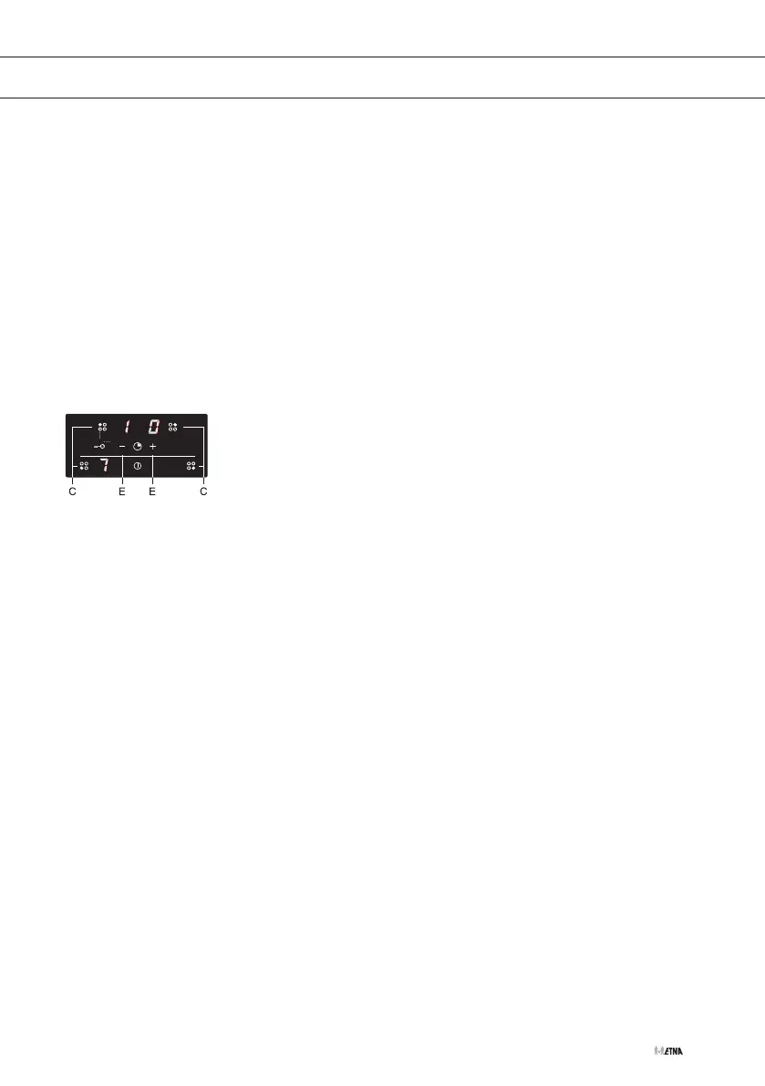 ▷ Wenn Sie zuvor bereits ein Kochfeld (C) eingeschaltet haben,