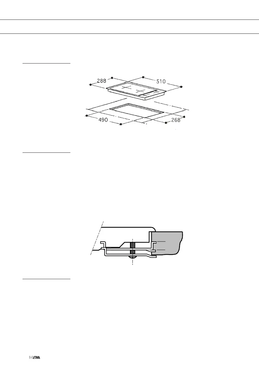 L’illustration ci-dessus indique les côtes de l´évidement d´encastrement.