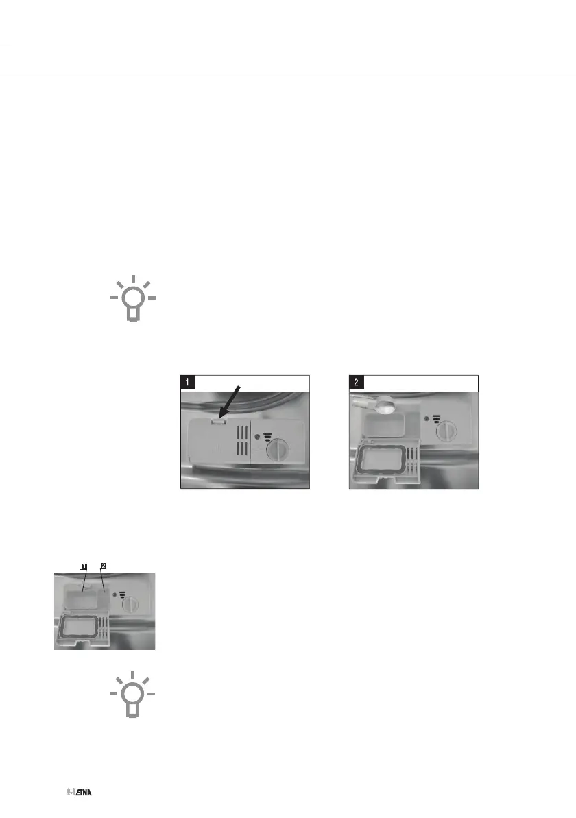 • Compartment for main wash cycle detergent (1), “MIN” is
