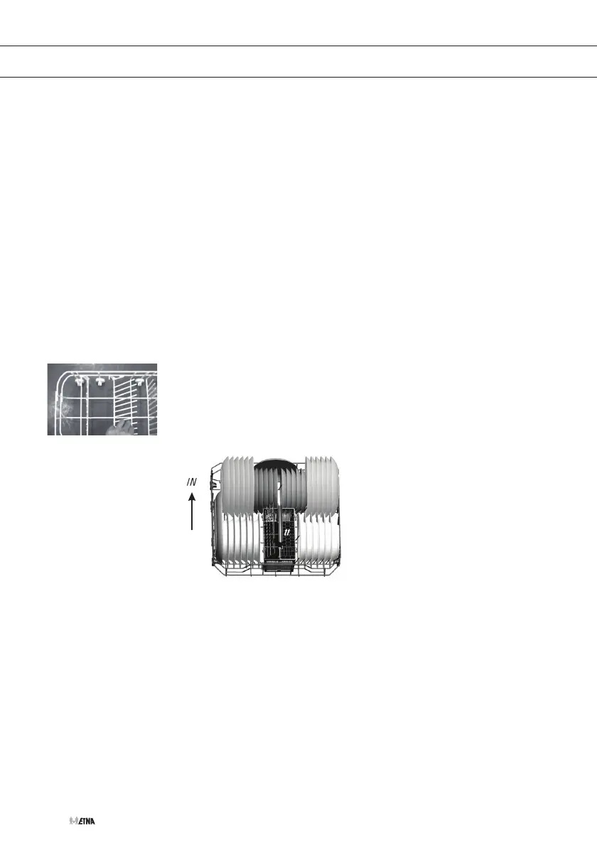 Les couverts doivent être placés dans le panier à couverts, les